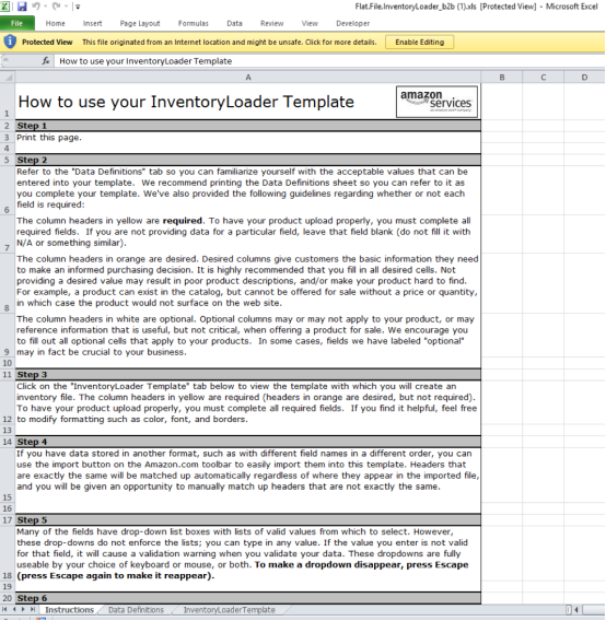 返回你已经下载好的Inventory Loader模板,开始编辑,模板会提示你所需填写的字段。