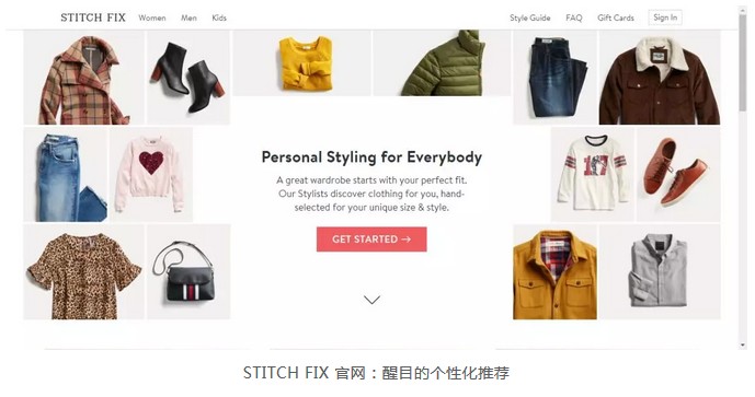 报告还给出了一个优秀案例,值得大家学习。 STITCH FIX是一家基于个性化推荐的服装电商公司。他们销售的产品100%都是基于推荐的,他们有4000多个造型师,这些造型师了解产品,了解客户,然后为客户提出非常好的推荐建议,从而满足客户的需求。