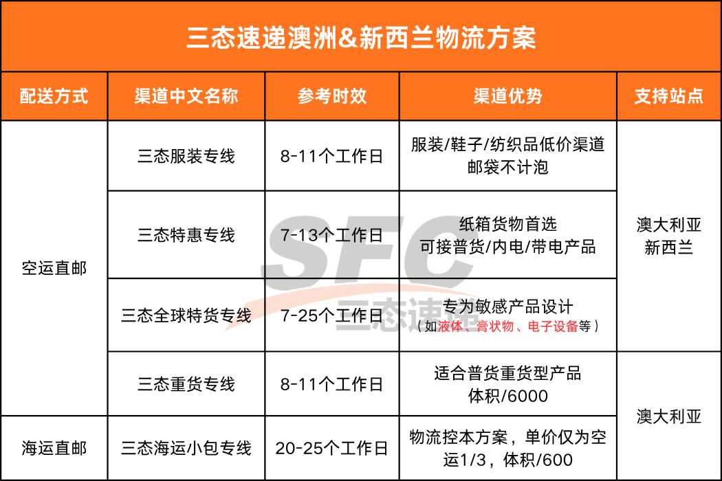 以上就是三态速递澳大利亚和新西兰相关物流解决方案,可有效解决跨境卖家物流痛点,聚焦产品与营销,助力您在这片南半球蓝海市场中赢得先机。如您想了解渠道更多详情,请联系您的三态速递负责客户经理或市场,我们将竭诚为您服务,提供一站式物流解决方案。