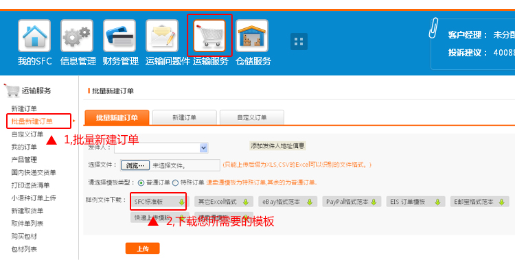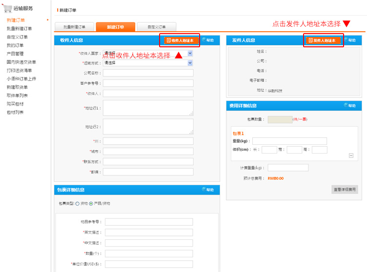 *有较多包裹需要寄送,可通过批量录入功能录入寄件信息。 点击使用【批量新建订单】