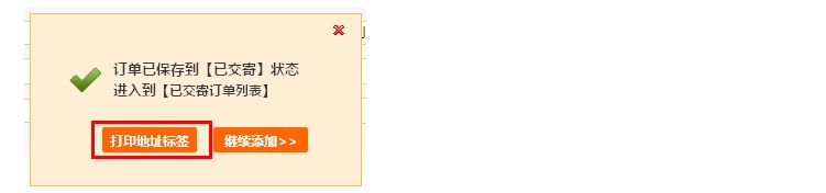 *订单成功上传后可进入【我的订单】进行管理,需要发货的订单移至【已交寄】状态,然后打印地址标签并粘贴,最后将包裹交给前海三态。