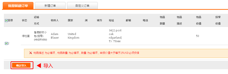 *有错误提示的订单是因填写信息不完整,成功上传后改订单将进入【待检查】订单列表。可在该列表中补充或修改订单信息。