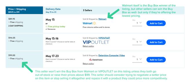 让我们首先从沃尔玛的Buy Box开始,因为要赢得它的复杂性相对较低。