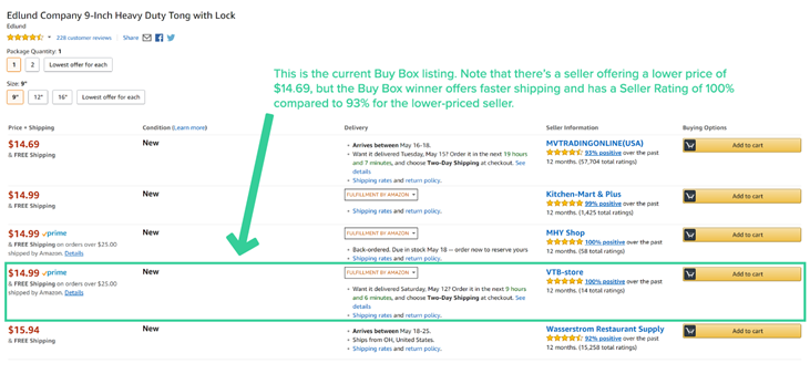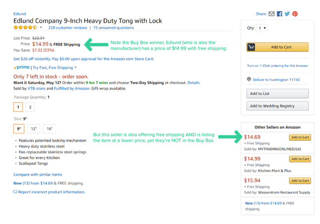 这个亚马逊Buy Box的例子表明,Buy Box的赢家并不是靠提供最低价格。