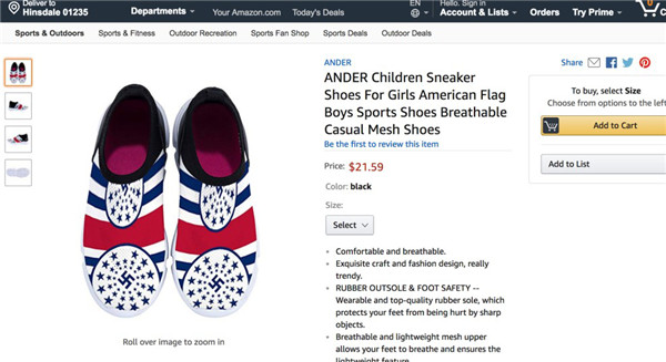 美国独立日7月4日即将到来之际,亚马逊FBA从其网站上下架了一款带有纳粹图案的红、白、蓝三款颜色的品牌儿童运动鞋,该产品是由第三方卖家所供应的。