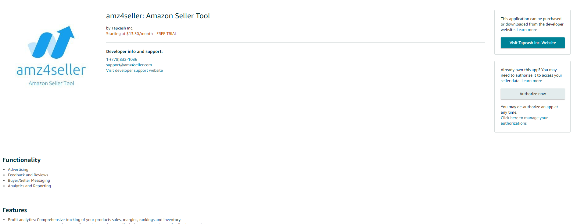 许多卖家喜欢用海卖助手,看中的无非是官方出品,对第三方渠道的软件在数据管理和安全性上不太信任。其实,市面上一款叫amz4seller(中文名:点金数据通)的亚马逊卖家工具,不仅在功能上要比海卖助手强大的多,还获得了亚马逊官方邀请并通过了审核,现在已经进驻了亚马逊卖家后台的应用商店板块,在Advertising、Feedback and Reviews、Buyer/Seller Messaging、Analytics and Reporting四个栏目中都有收录,在卖家最担心的安全性方面,多了一层官方保障。