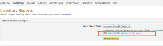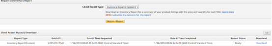 你会注意到上面写着“库存报告”(自定义)(Inventory Report (Custom)),等待报告下载完毕。
