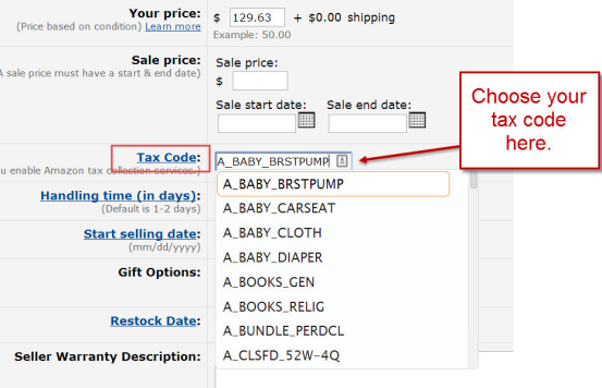 你也可以点击这里,观看视频教程,视频在5分15秒处提到了产品税代码。注意:必须看完视频,因为如果你不按照所有的指示来操作,很有可能会恢复到默认设置。(必须登录到亚马逊卖家中心Seller Central的账号才能观看此视频。点击此处)