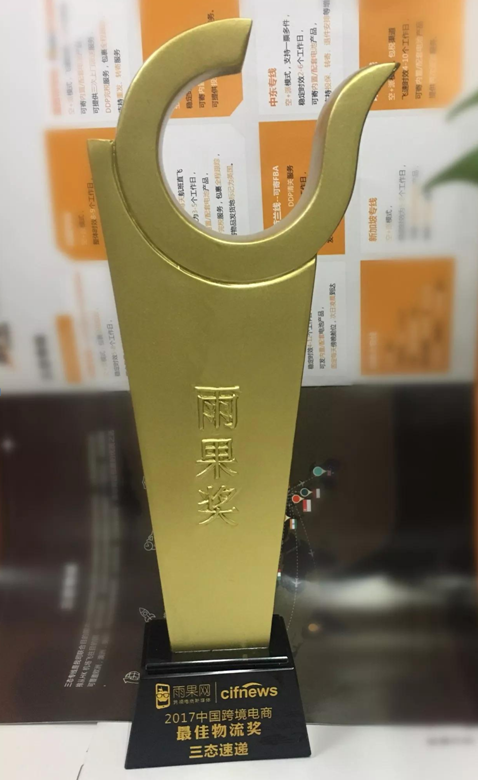 三态速递此次凭借新兴市场互联网系统智能化物流解决方案获得《雨果网最佳物流奖》。作为行业领头羊,三态速递为许多中小企业解决了出口运费贵,以及在新兴电商国家邮路难的问题,而今后,三态速递将为更多跨境电商卖家及从业者解决更多实际性困难,以前沿的科技眼光,帮助卖家提高了运营效率,降低运输成本,高效的将中国制造发往全球。