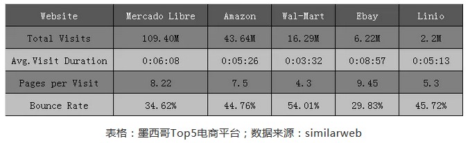 MercadoLibre是墨西哥电商市场访问量排名第一的电商平台,2018年新增了两个仓库,总面积已到140万平方英尺。亚马逊于2015年在墨西哥设立物流中心,并开始销售产品;2017年3月为推出Prime服务,大胆抢占墨西哥市场。