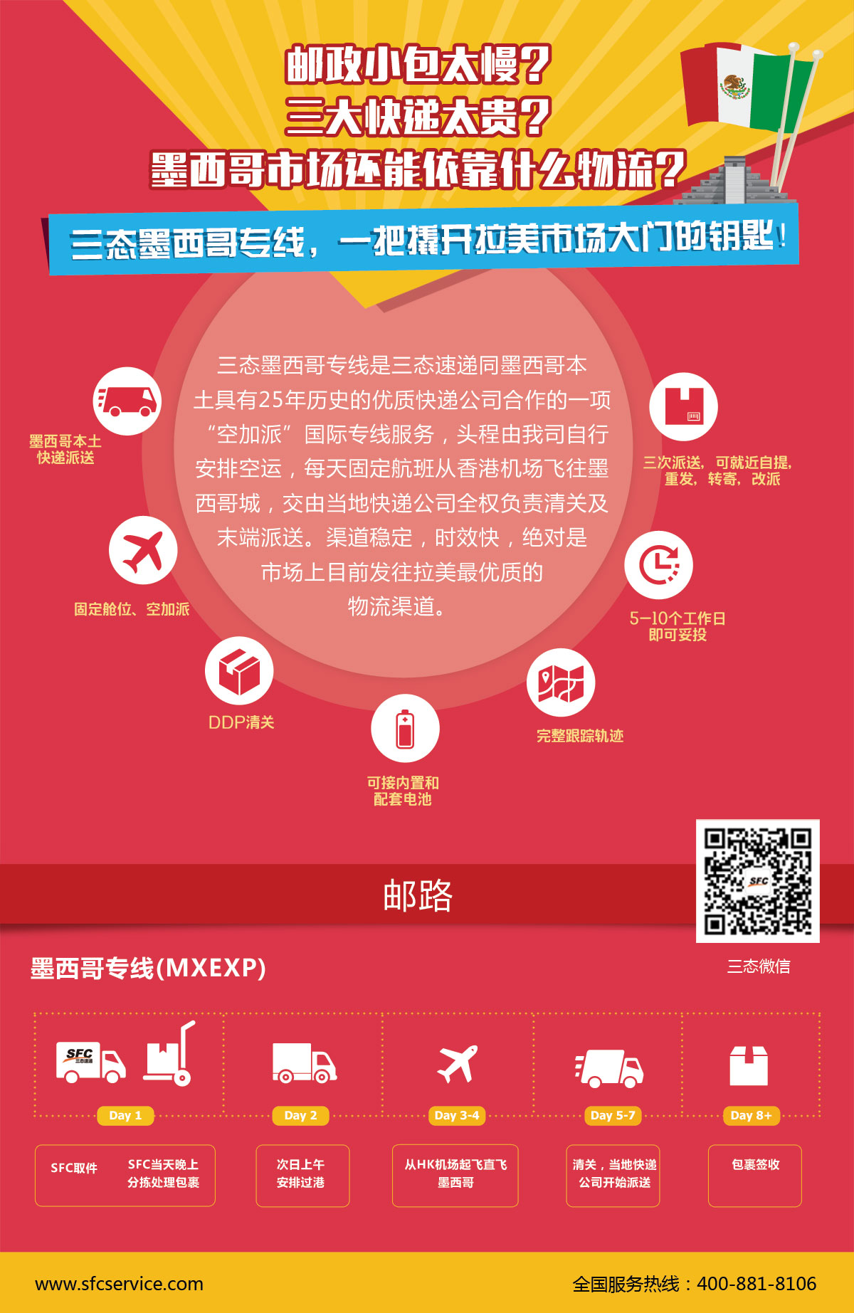 三态速递是一家有着10余年跨境物流的经验和全球各国优质的物流资源的物流服务商,成立专业物流团队,自主开发并成功推出墨西哥物流专线服务,全程跟进管理。