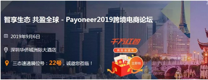 那么,9月6日有什么重大事件?没错,那就是9月6日Payoneer将在深圳华侨城洲际大酒店开展主题为“智享生态 共盈全球”的跨境电商企业高峰论坛活动!
