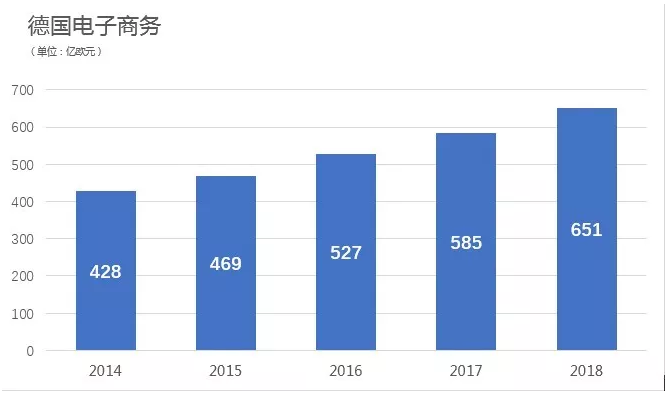 德国电商规模2018年突破 651 亿欧元,较2017年增长 11.4%,在线零售平台迎来强势发展。