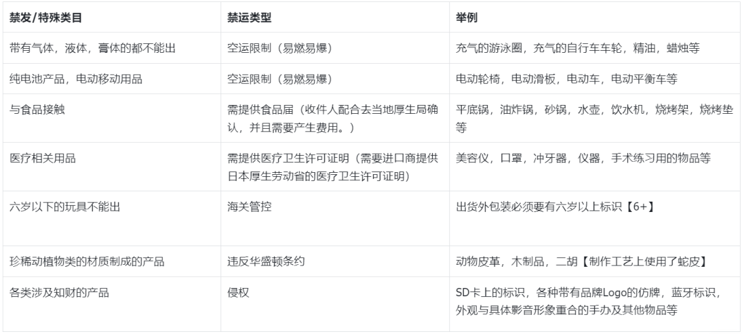 申报注意事项:日本清关环境相较其他国家严格,对于特定品类进口有严格的限制,大致分类如下: