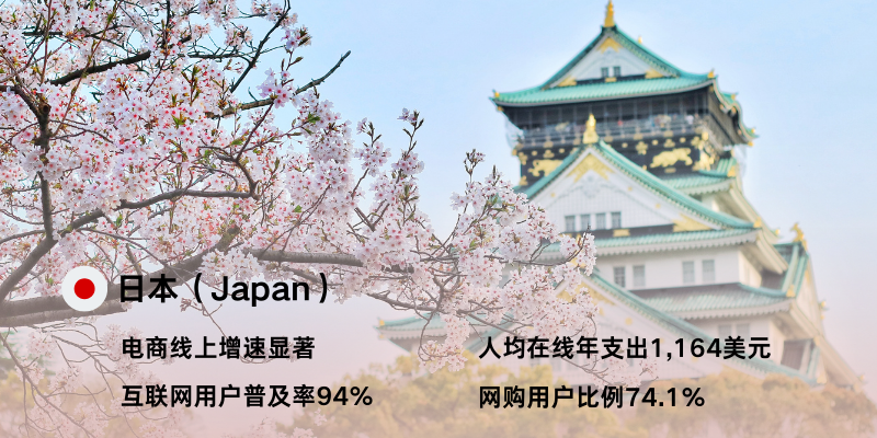 日本跨境电商市场持续稳步增长,根据Statista和ecommerce DB的数据,2023年日本电商市场规模已达1539.84亿美元,预计到2025年将突破2234.9亿美元,复合年增长率达9.8%。日本互联网用户数量约1.01亿,互联网普及率高达94%,其中约74.1% 的日本人会进行网上购物,人均在线支出约为1,164美元。种种市场数据表明,日本拥有高度成熟的电商生态和强大的消费者购买力。