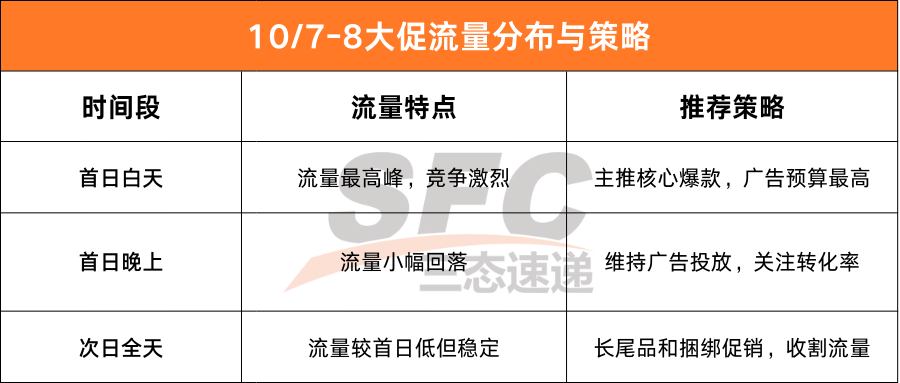 亚马逊大促虽然有48个小时,但流量并非均匀分布。参考7月份96小时会员日的经验,流量通常有以下规律: