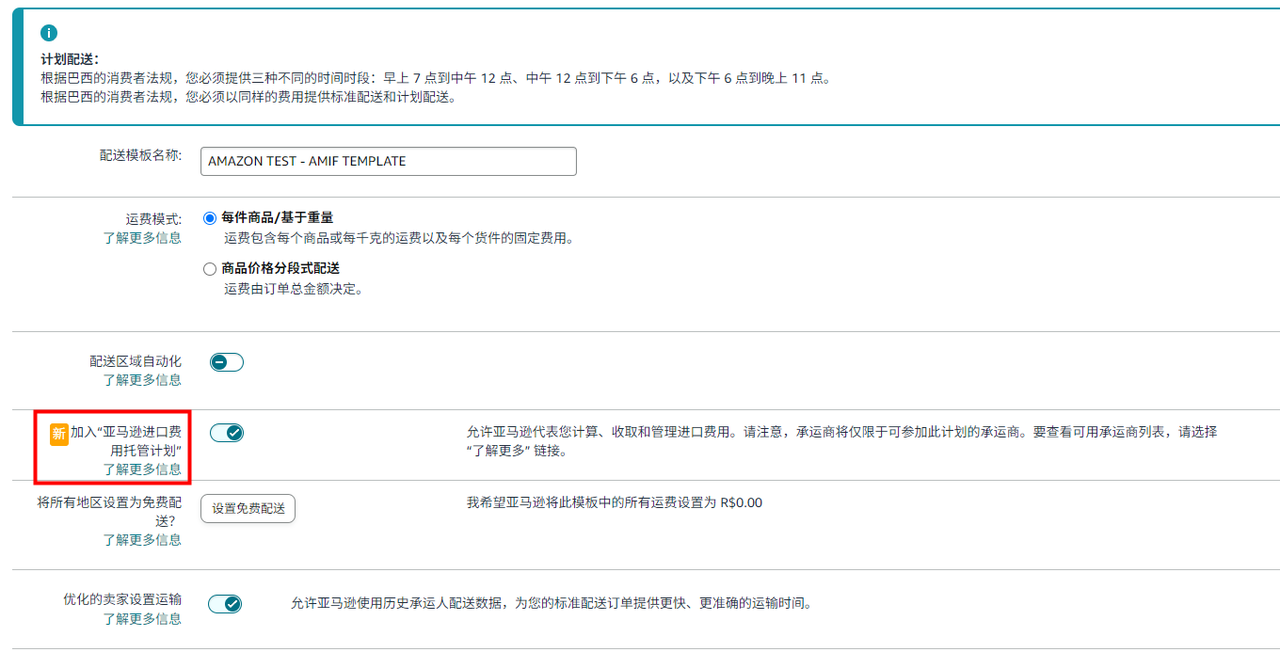 这项功能允许卖家自由选择使用AMIF项目支付巴西关税,若选择使用,订单税金将由亚马逊平台线上统一收取,大幅简化了跨境清关流程。
