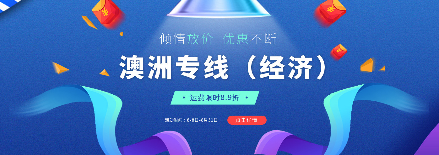当您还在惋惜没能赶上6月和7月的大促活动时,8月促销已如约而至。既然天气已经这么热,那就给我们的运费降降温吧。而本期的大促内容就是:澳洲专线(经济)AUEXPIE八月运费限时8.9折!