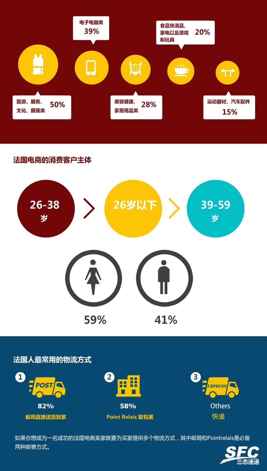 您知道在法国有82%的消费者更偏向于使用邮局直接送货到家的服务吗?您想了解法国市场最畅销的产品种类吗?您知道法国主力消费群体的年龄和性别分布吗?