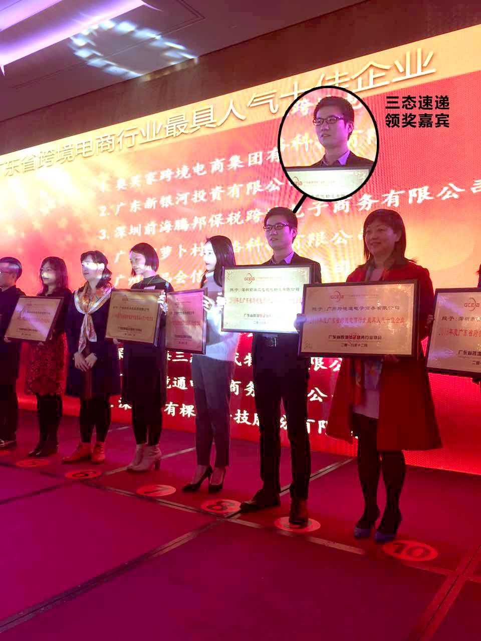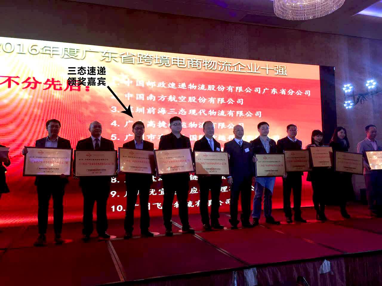 历时一个月, 2016年度广东省跨境电商行业协会“获奖名单”新鲜出炉,评选出了2016年度广东省跨境电商行业各个领域的10强企业,共设置了9大领域和行业领军人物、杰出青年、人气企业等奖项。三态速递一连摘夺两个奖项,分别荣获了《2016年度广东省跨境电商物流企业10强》,以及由网友票选出的《2016年度广东省跨境电商行业最具人气十佳企业》。