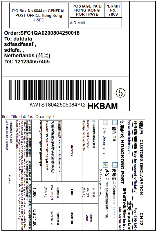 接承运商通知,为了提升整体时效,香港邮政小包(渠道代码:HKBAM)标签更改如下: