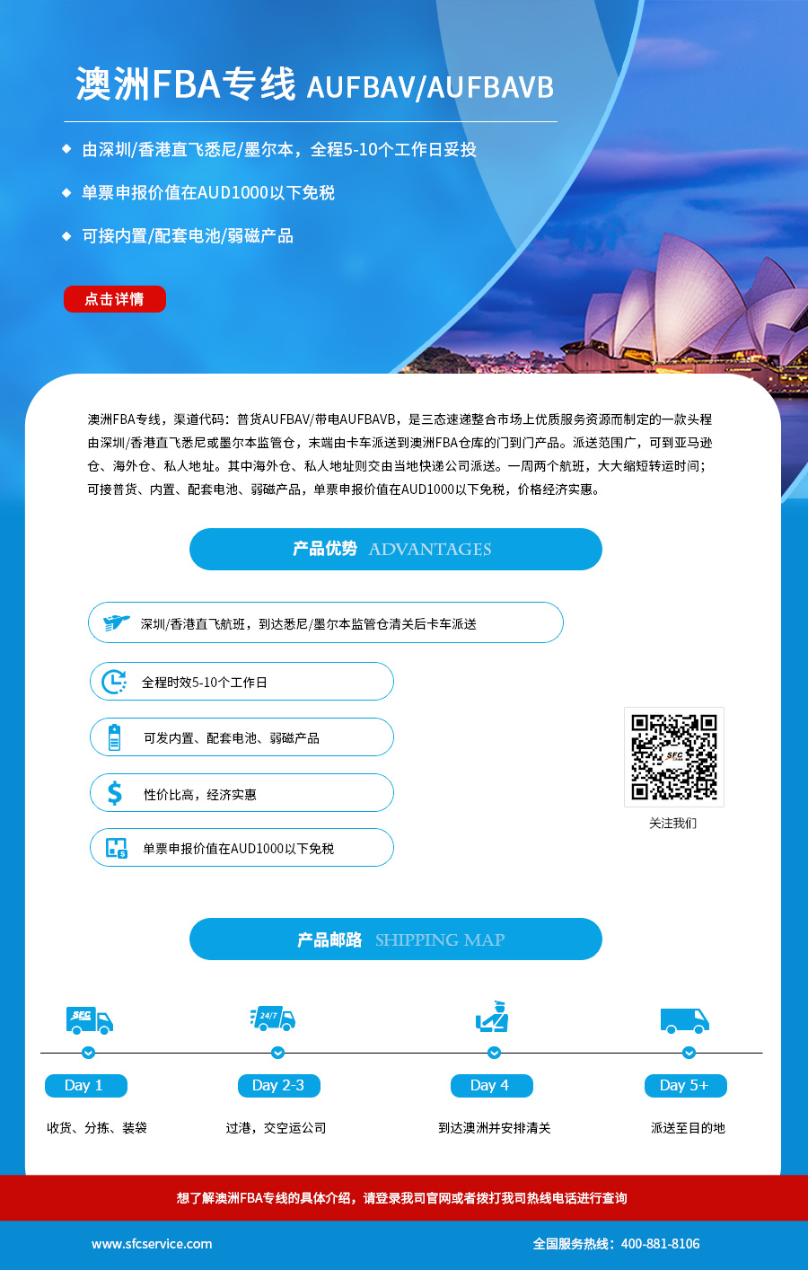 澳洲FBA专线,渠道代码普货AUFBAV/带电AUFBAVB,是三态速递整合市场上优质服务资源而制定的一款头程由深圳/香港直飞悉尼或墨尔本监管仓,末端由卡车派送到澳洲FBA仓库的门到门产品。派送范围广,可到亚马逊仓、海外仓、私人地址。详情请看下图。