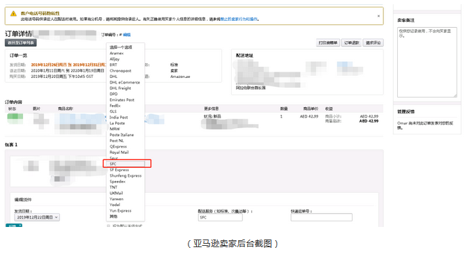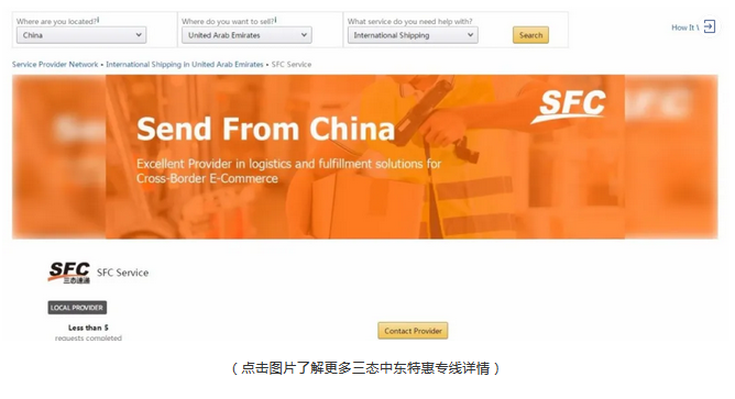 亚马逊中东站要求使用全程可追踪的物流服务,且截至第一次尝试派送,时效需控制在8个工作日左右,而三态的中东特惠专线完美满足平台要求。另外,现在亚马逊中东站的卖家要使用三态物流服务也很简单,在亚马逊卖家后台的物流商下拉列表中找到"SFC", 进行标记发货即可。